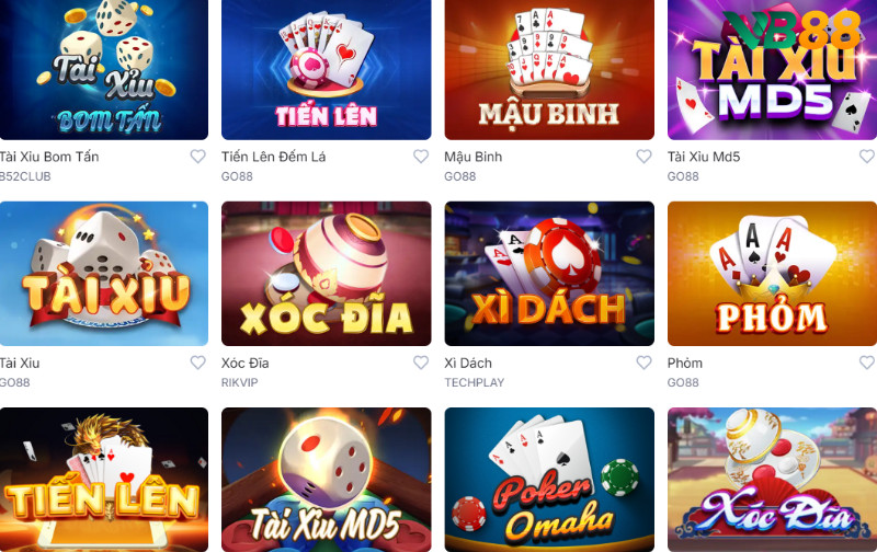 - Mậu Binh (Binh Xập Xám): Trò chơi yêu cầu người chơi sắp xếp 13 lá bài thành 3 chi với chiến thuật hợp lý để đánh bại đối thủ.