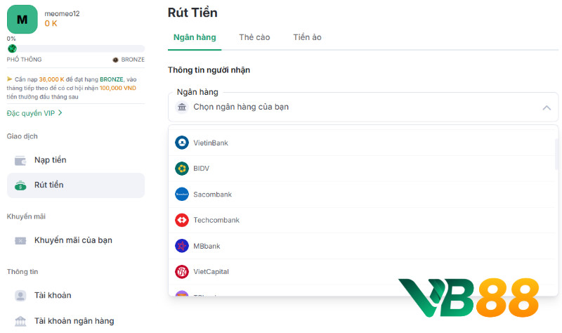 Hướng Dẫn Rút Tiền Từ Tài Khoản VB88